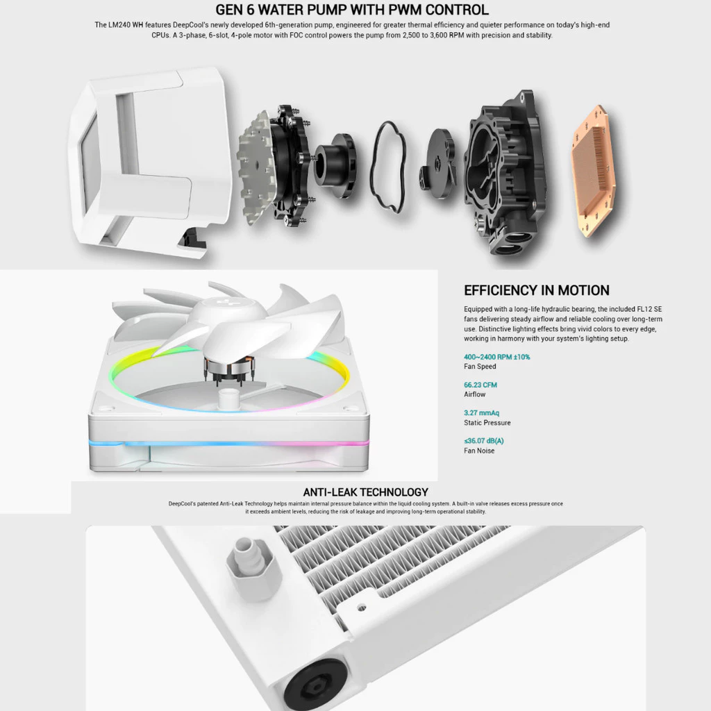 DEEPCOOL LM360 ARGB LIQUID COOLER WHITE R-LM360-WHDMMC-1